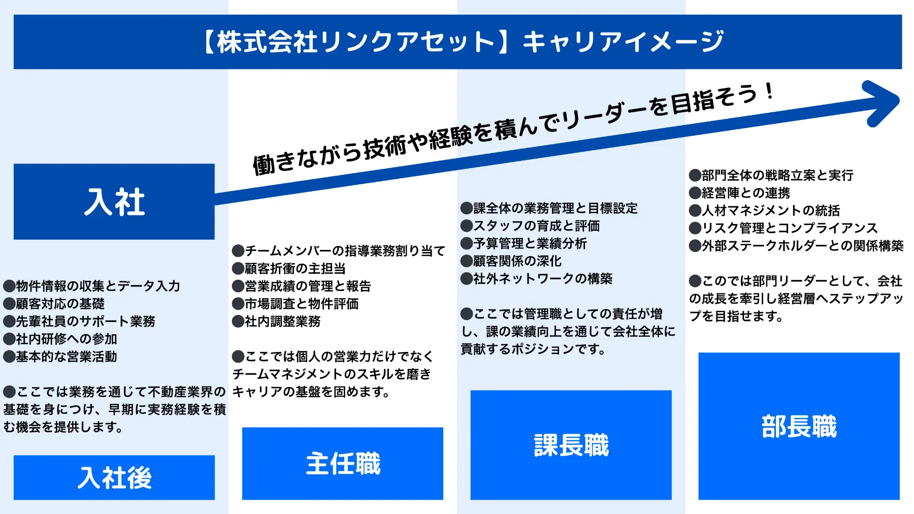 入社後は一人の不動産営業としての能力向上を目的とした教育を行い、